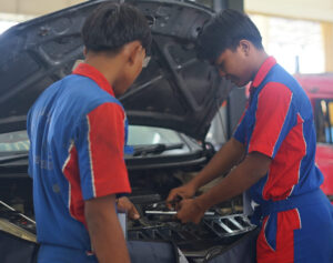 Belajar perawatan, servic ringan, hingga overhaul mesin, termasuk sistem bahan bakar bensin dan diesel.
